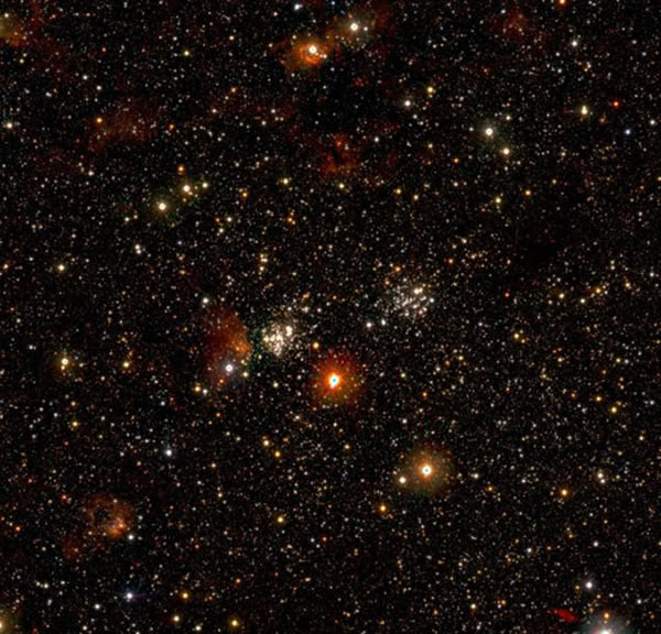 这幅图结合了在夏威夷的英国红外望远镜和智利的Vista望远镜的数据。天文学家利用红外线辐射,而不是可见光,使他们能够看穿银河系的尘埃,记录银河系中心的详细信息。