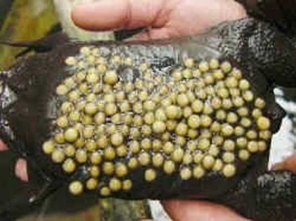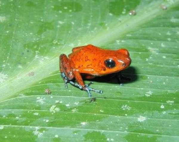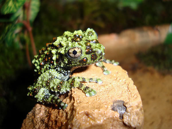 负子蟾能够有效地保护卵,将卵放置在背部,用自己的皮肤来孵化幼体。它们的身体扁平杂色,长着许多瘤状物质,它们能够完美地与腐烂树叶混合在一起。使用指尖奇特的星状传感器官能够探测途经的猎物,这是一种完全水栖生物,它们在陆地上几乎无法移动。