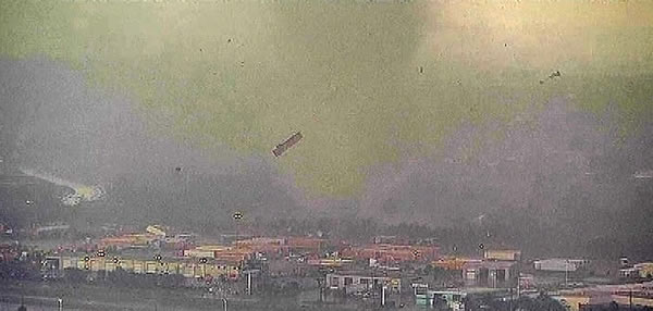 美国媒体报道说,当日下午,至少两起龙卷风袭击了该地区。美国有线电视新闻网的画面显示,大型卡车、拖车像玩具一样,被强风刮到空中。天空乌云密布,如同黑夜。一些房屋屋顶被刮走,卡车翻倒在地。