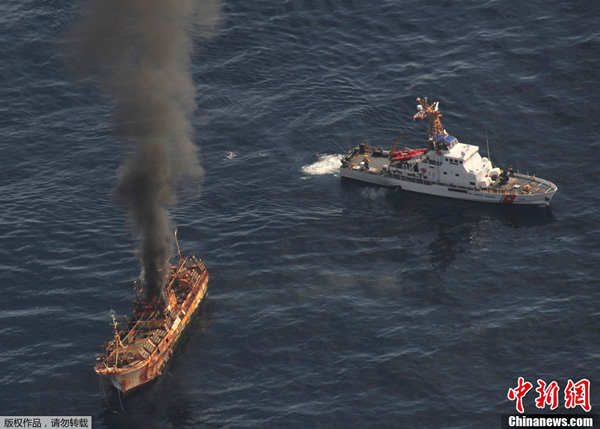 4月5日,美国海岸防卫队将去年日本海啸后漂流到阿拉斯加的一艘日本渔船击沉,结束它在太平洋上长达一年多的孤独旅程。美国海岸警卫队解释说,此举主要是为了避免这艘无人控制的渔船危害其他船只的航行安全。