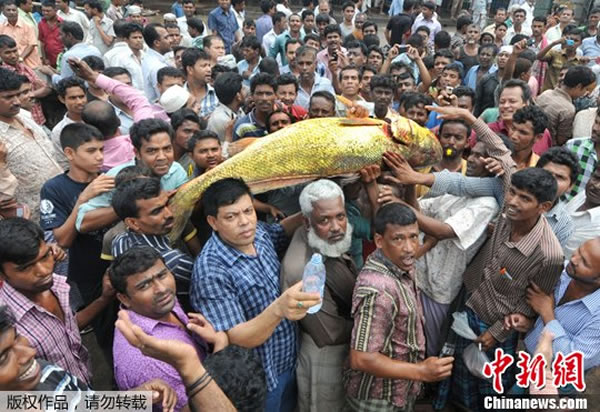 孟加拉国渔民捕获一条罕见的金色大鲷鱼 来源: 蜘蛛网 时间:2012年4月07日 11:02 孟加拉国渔民捕获一条罕见的金色大鲷鱼 孟加拉国渔民捕获一条罕见的金色大鲷鱼 4月4日,在孟加拉国东南部城市吉大港,当地渔民捕获一条罕见的金色大鲷鱼,在鱼市售价高达4万美元,引来民众好奇围观。 中国新闻网 上一篇 下一篇 TAG: 鲷鱼