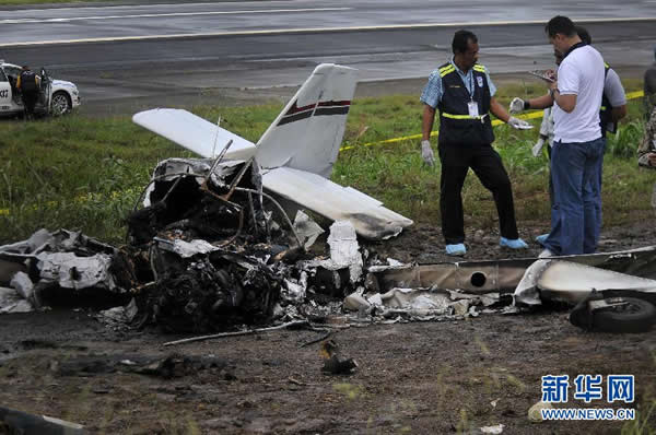 一架轻型飞机在巴拿马坠毁 来源: 蜘蛛网 时间:2012年4月08日 13:16 4月6日,在巴拿马城马尔科·赫拉韦特机场,工作人员在飞机坠毁现场调查。 4月6日,在巴拿马城马尔科·赫拉韦特机场,工作人员搬运遇难者遗体。 当天,一架轻型飞机起飞后不久在机场跑道附近坠毁,机上2人全部遇难。 新华社发(毛里齐奥·巴伦苏埃拉) 上一篇 下一篇 TAG: 巴拿马 飞机
