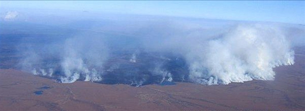 就像2007年阿拉斯加火灾造成的那样,5500万年前突然发生的全球变暖可能是由永久冻土释放的二氧化碳所致。图片来源:Bureau of Land Management/Alaska Fire Service
