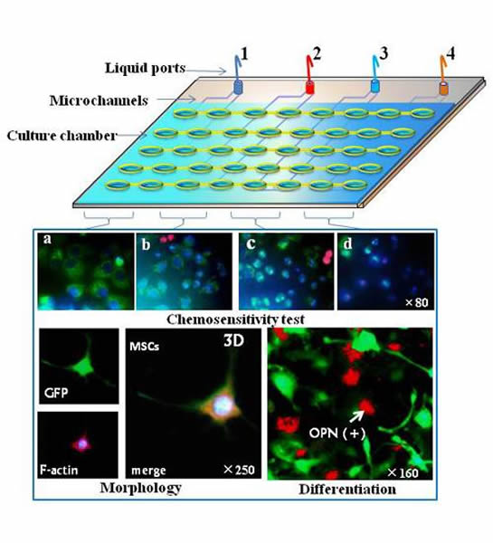生物相容性纳米纤维具有模拟细胞外基质成分,可实现细胞三维培养等重要功能。该研究将微流控技术与纳米纤维材料相结合,以独特方式制备了具有可控图案化功能的纤维结构,成功实现了微空间条件下的阵列区域化细胞三维培养,并进一步研究了间充质干细胞在微环境中生长、分化等生物学行为,同时也对肝癌细胞的化疗药物敏感性进行了评价。