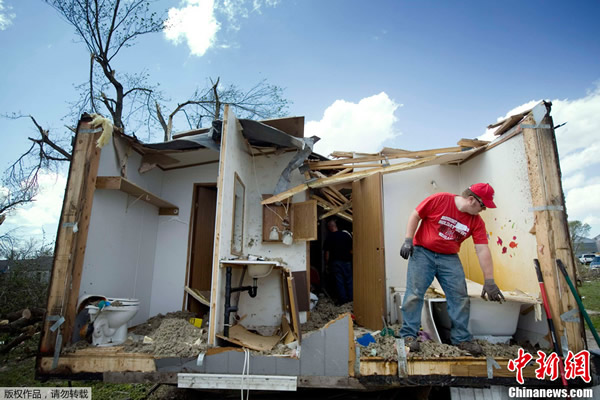 美国中西部遭龙卷风肆虐 来源: 蜘蛛网 时间:2012年4月16日 15:04 美国俄克拉荷马州,民众在建筑废墟中搜寻有用物品。 美国堪萨斯州,被龙卷风刮倒大树和损毁的汽车。 美国爱荷华州,被风吹得只剩半边的房屋。 美国堪萨斯州,一名记者拍摄被连根拔起的大树。 14日,美国堪萨斯州,龙卷风来袭时的景象。 美国俄克拉荷马州官方15日公布,由于强力龙卷风的袭击,该州西北伍德沃德市已确认有5人死亡,至少29人受伤。巨大的风暴从14日开始自西向东横扫美国中西部平原地区,龙卷风挟带强风和高尔夫球大小的冰雹,造成多处医院、房屋和其他建筑物损坏,电力中断。 中国新闻网 上一篇 下一篇 TAG: 龙卷风 美国