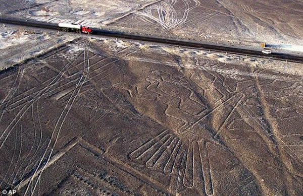 “谷歌地球”显示秘鲁有许多形如动物的巨大土丘,形成时间可追溯到5000年前。这个国家的“纳斯卡线”全球闻名,包括地上的一系列巨型动物轮廓。
