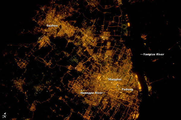 美国宇航局地球观测站今日公布了一组宇航照片,展示了中国上海的夜景及10年间的巨变。