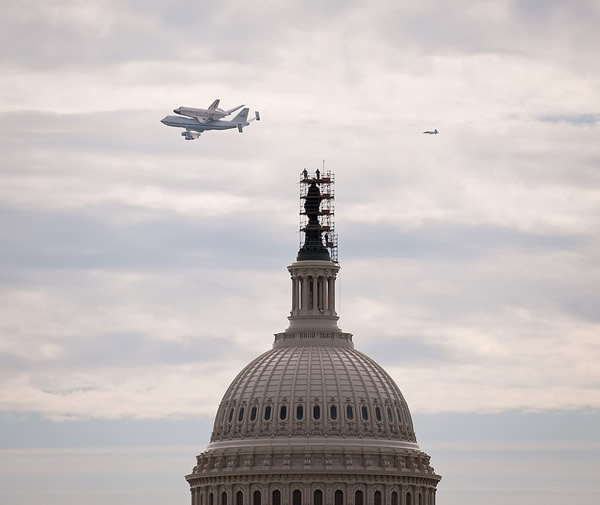 在这最后一次飞行中,“发现号”不必发射升空,他“匍匐”在美国宇航局特制的波音747飞机的机身上,伴随现场近2000名宇航员、工作人员、贵宾、游客和媒体记者的欢呼声,滑行过跑道向晴朗的天空飙升。两架飞机将在首都华盛顿市区绕行后降落,今后,人们可在博物馆中一睹“发现号”芳容。