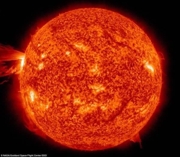 16日下午大约5点45分,美国宇航局的太阳动力学观测卫星拍到壮观的太阳耀斑。当时,耀斑从太阳东北部喷涌而出,将美丽的弧形超热等离子喷流射向太空。这是最近几年出现的最美丽同时最壮观的太阳风暴之一。
