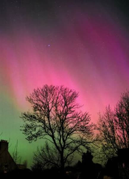 北极光或者南极光是地球上明亮的彩色光影展,比天王星上的极光持续时间更长。二者都是由太阳风与行星磁场发生反应造成的