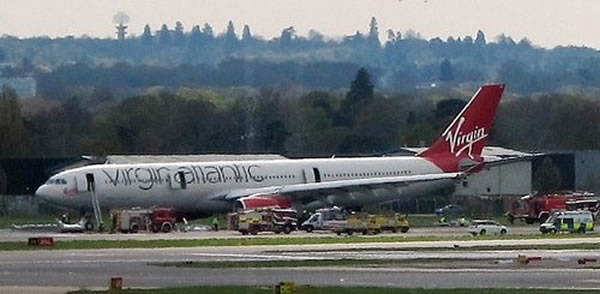 英国维珍航空一架A330客机因机舱着火紧急迫降伦敦盖特威克机场
