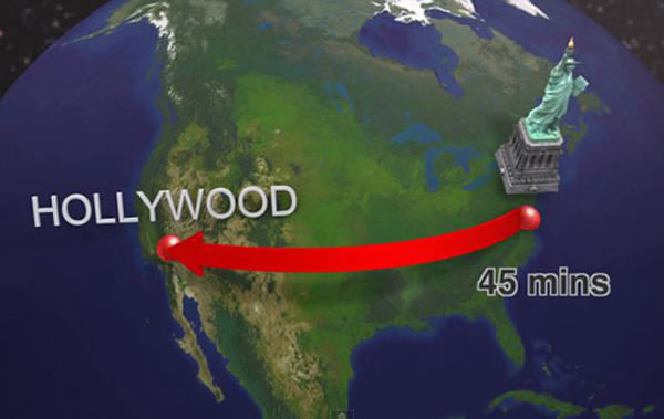 乘客坐在一个设有6个座的乘客舱当中,然后被逐渐加速到令人惊讶的6500公里/小时。这意味着从纽约到洛杉矶仅需要45分钟,到中国也只要2个小时或者说能在6个小时之内环游地球一圈。如果有一天早上你从伦敦坐上这种真空管道运输工具,那么仅仅45分钟后就可以在纽约下车了。