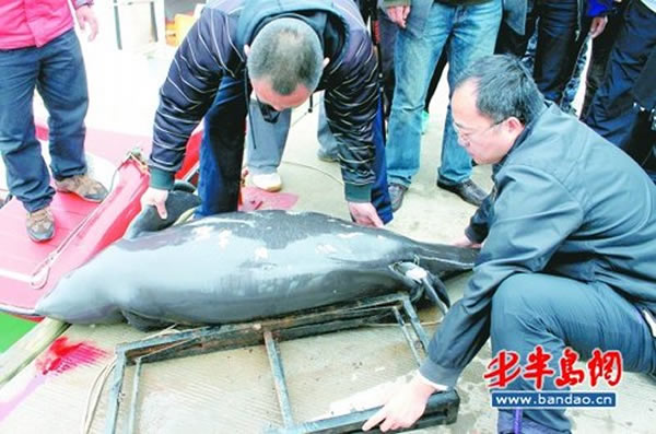 “这还是一头母江豚啊,真可怜,一尸两命。”码头上不少市民查看了这头江豚,纷纷觉得惋惜。随后,水族馆的工作人员将这头江豚运走。据工作人员介绍,从江豚目前的状况来看,可能还有科研价值,是否要制作成标本,还要进一步检查鉴定。24日下午从水族馆获悉,经过测量 ,江豚长1.8米,重量 200多斤,已死亡10天左右。