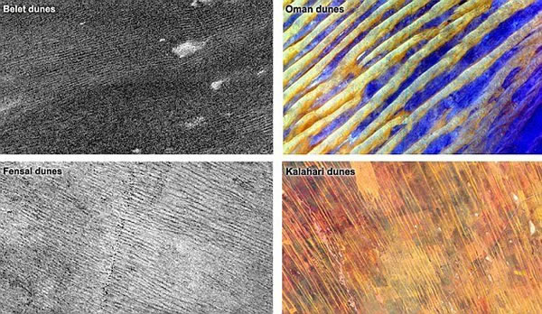 卡西尼探测器拍摄的土卫六图像经分析显示土卫六这种沙丘形式类似于地球上的荒原沙漠。这项研究结果为勘测研究这颗卫星的气候和地质历史提供了新的线索。