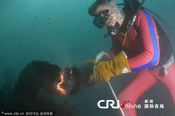 美国夏威夷,潜水员特平在工作。潜水员用双手触碰1000摄氏度的熔岩,而海底火山还在持续喷发。勇敢的潜水员潜入130英尺深的海底,寻找熔岩的源头,并用焊接手套和鱼钩来塑造炙热的驼鹿头。如果熔岩管破裂,或者朝他喷发,他将会有生命危险。雕刻家特平58岁,他的作品总是在完成之前就被喷发的火山所破坏。然而,这名熔岩海洋冒险潜水公司的创始人认为,人们应该知道他所创造的艺术品的长度,并请摄影师Doug Perrine帮忙,将这些创作景象展示给世人。