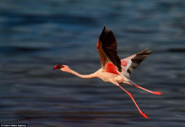 这只火烈鸟即将在博格里亚湖降落,加入巨大的鸟群