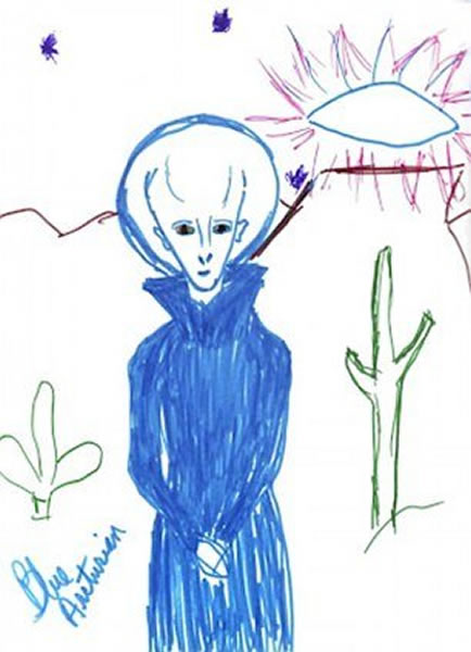 这些黑皮肤家伙是人类混合体,他们看上去像黑人,以奇特的声音说话。我记得我父亲曾告诉我,他在上世纪50年代曾遭受外星人的绑架,目前我的父亲已死亡,他死于癌症,正如外星人所说的那样,他死于2001年,9.11事件发生不久,外星人说我的母亲将于2011年死亡,结果她的确就是在当年死亡。他们知晓我的事情,我却不知道他们来自何处。