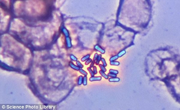 显微照片显示人体内的大肠杆菌。