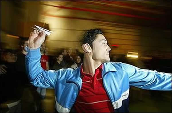 捷克人托马斯·贝克(Tomas Beck)制作的纸飞机飞行长度达50.37米,摘得最远飞行距离的冠军。来自黎巴嫩的埃利·谢马利(Elie Chemaly)制作的纸飞机在空中飞行10.68秒,成为最长飞行时间的冠军。