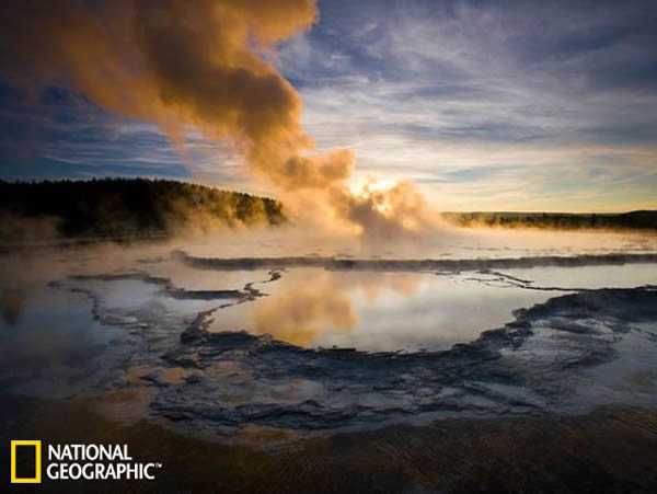 黄石公园的大间歇泉,其热量来自地下的火山岩浆加热