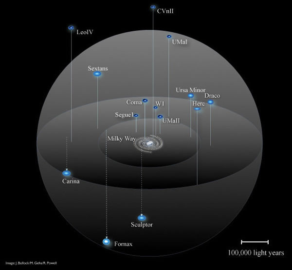 银河系周围的卫星星系分布示意图