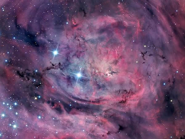 对北半球的天空观测者来说,礁湖星云(NGC 6523)就是夏日夜空中的名品。虽然从绝大多数北半球地点观测,礁湖星云升起的位置并不高,但是智利托洛洛山美洲天文台却能捕捉到这新出现的旋涡状尘埃云奇观。这幅图片由连续多天累积20小时捕捉的数据合成,让本来是红色调的礁湖星云因为望远镜的角度原因看起来比一般的时候要显得蓝一点。