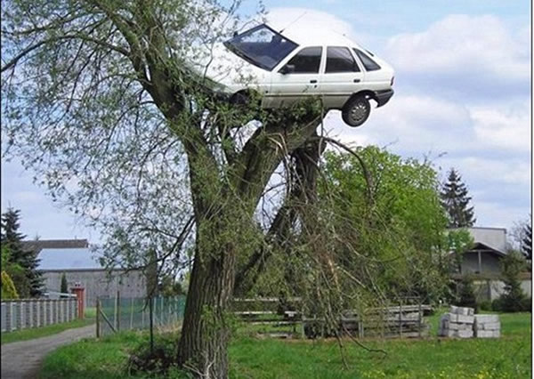 波兰男子驾驶技术太烂 汽车被邻居抬上树