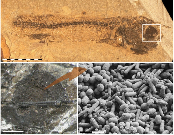 一项最新的研究发现:5400万年前鱼化石眼中的鹅卵石状微观结构实际上是天然色素——黑色素所遗留下来的痕迹。类似的微观结构过去常在化石中的羽毛、头发和眼睛等部位中被发现,但过去科学家曾认为这种微观结构是生物死亡后细菌作用所形成的。