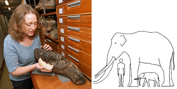 一个世纪之前,科学家在希腊的克里特岛发现了这一迷你象的化石,它大约有80万年的历史。此前,研究人员认为,这头肩高在1米左右的迷你象(参看右图的比例对照),其祖先是在远古时期从欧洲大陆进入希腊岛的大象并且体型随着时间的推移而收缩。不过,一项最新的分析显示,这只动物根本就不是普通的大象,而是一头猛犸象。其臼齿上的表面珐琅质样式(参看左图中浅色的牙齿部分)以及牙齿高度和宽度的比率,使该物种和欧洲大陆的猛犸象而不是大象更为相近。
