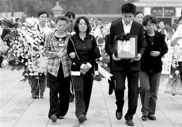 昨天上午,细雨纷纷,不少前来为冯志强送别的群众冒雨站在八宝山殡仪馆东礼堂外。上午9点,追悼会正式开始。此时吊唁者已有2000多人,队伍排至百米开外,人流缓缓向礼堂移动。吊唁者大都面色凝重,不少人看到冯志强的遗体后不禁失声痛哭。