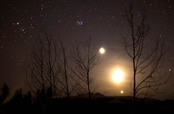 这位摄影师说,晚上,金星和木星比其他所有星球都亮,和月亮连在一起,形成一个不同寻常的壮观画面。