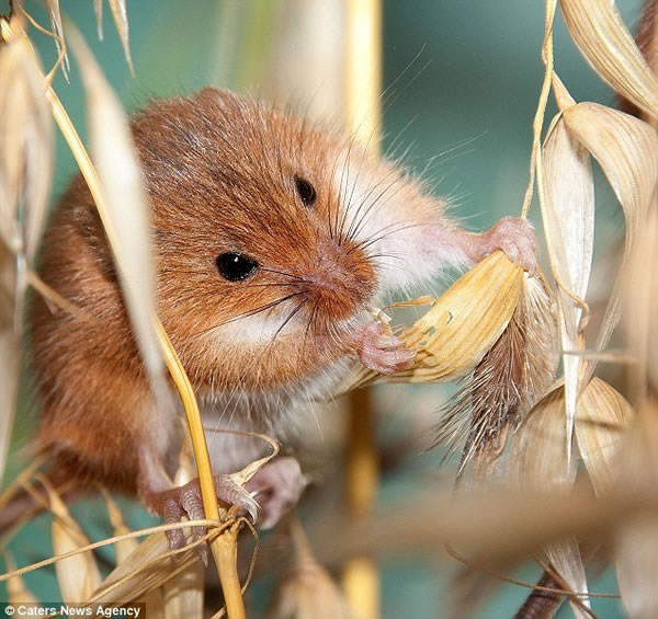 勇敢的巢鼠能够用尾巴倒悬挂在植物上,来寻找谷粒食物