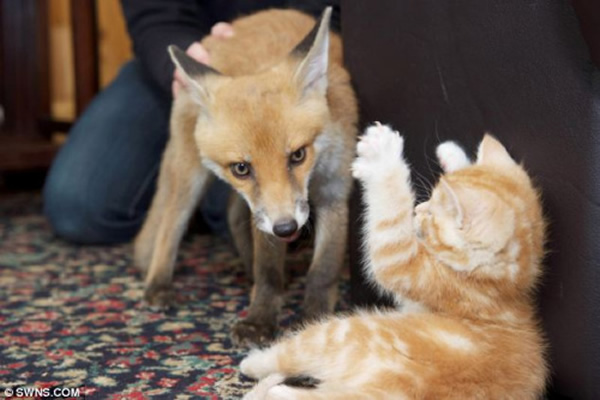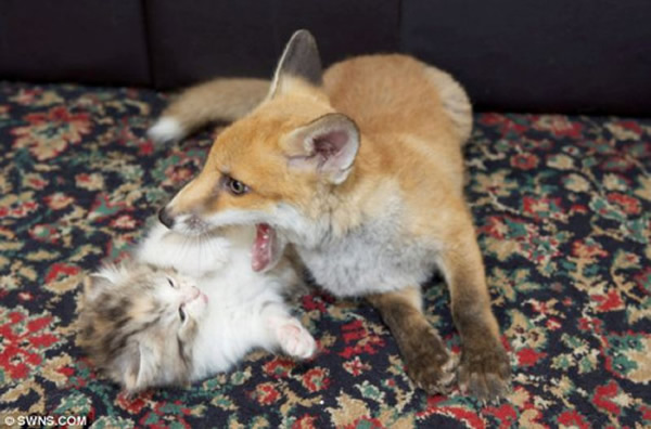 据报道,这小只狐狸是在野外被车撞伤后,被路人送到该动物救助中心的。之后,这只狐狸被安排与3只被主人抛弃的猫做邻居,这3只猫对这只受伤的狐狸极为关心,经常依偎在其身旁,陪它一起玩耍。就在这段疗伤期间,它们逐渐成了密友,演绎出了一段跨越物种的友谊。