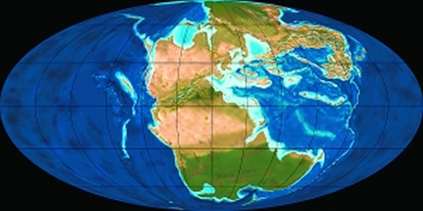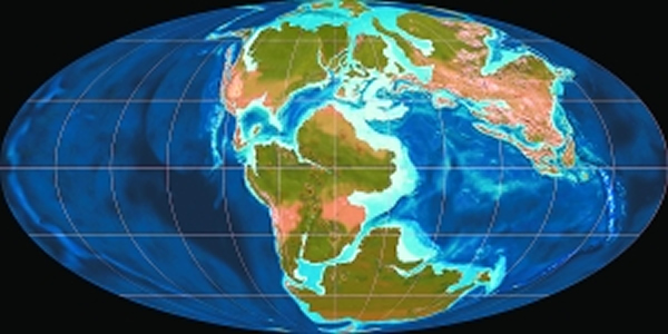 两亿两千万年前,地球上只存在一个超级大陆,其面积相当于现今所有陆地面积之和,史称联合古陆或者泛古陆。联合古陆气候相对稳定温和,地球赤道地区并不炎热,南极和北极地区也没有冰川,地球不同区域生长着近乎相同的生物种类。