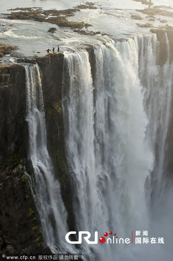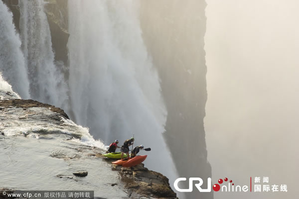 津巴布韦,来自南非的Steve Fisher和Dale Jardine来自美国的Sam Drevo是三名皮划艇冒险家,他们试图在维多利亚瀑布汹涌的激流中进行划行,挑战这一非洲最大的瀑布。尽管每一次划行可能都意味着这三人面临着死亡,而且不得不担心鳄鱼可能就在数米远的地方埋伏着。不可思议的是,三人进行这项惊险的举动的目的,仅仅是希望从激流之下对这一瀑布进行更好的审视。来自澳洲的摄影师Desre Tate在距离瀑布百英尺的高空乘坐直升机记录了三人冒险的全过程。