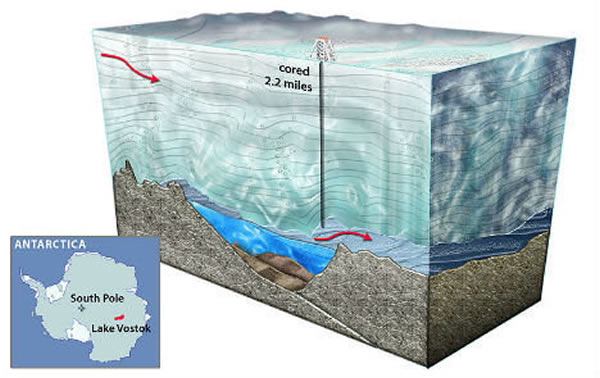 淡水冰川湖沃斯托克湖可以隔离地存在3000万年,它位于南极洲寒极地区,湖水表面大约位于南极冰层以下13000英尺深,海平面1600英尺以下。2012年2月份,一支俄罗斯科学家小组表示从沃斯托克湖中提取了淡水标本,相关的标本分析将于2012年底进行。
