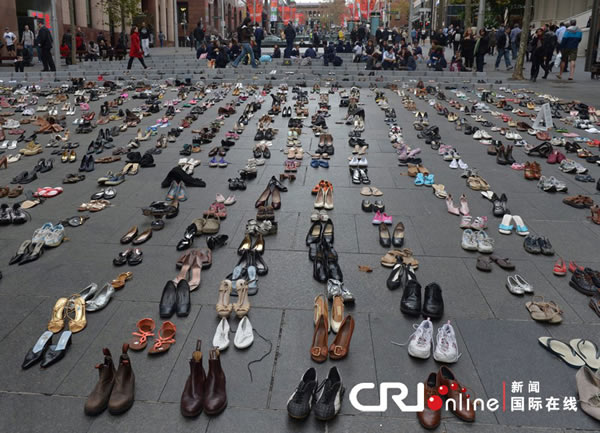 澳大利亚悉尼地上摆放1400双鞋子呼吁关注交通安全 来源: 蜘蛛网 时间:2012年5月26日 14:00 澳大利亚悉尼地上摆放1400双鞋子呼吁关注交通安全 当地时间2012年5月25日,澳大利亚悉尼,地上摆放的1400双鞋子,代表了平均每年澳大利亚交通事故中的死亡人数。这项活动是为了响应澳大利亚道路安全基金会举办的“周五远离死亡”运动。 国际在线 上一篇 下一篇 TAG: 澳大利亚