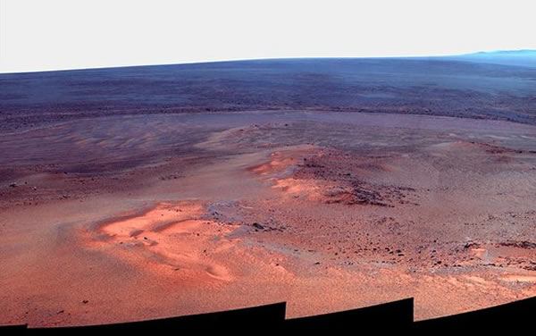 机遇号火星自2011年8月抵达奋进号陨坑西部边缘进行研究工作,这个陨坑跨越14英里,大约相当于西雅图市的面积。