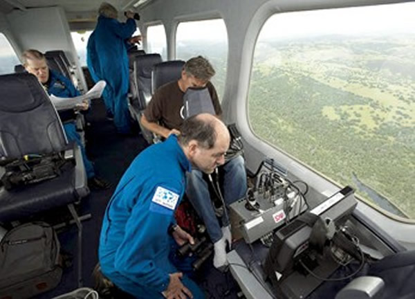 现在,空管当局给予特别批准,飞艇得以在陨星坠落处上空巡视飞行。飞艇里配备了带有陀螺稳定装置的高清晰度摄像机,这通常用于体育赛事的摄影;训练有素的观察员使用望远镜和照相机,帮助寻找地面烧灼的痕迹和可能发生的撞击。到达感兴趣地点,则可以从空中放大视像,以便对当地坠有陨石的可能性作出评估。一旦认为有必要靠近检查,就会借助无线电向地面团队发出通知,让后者去走一趟,仔细检查一番。