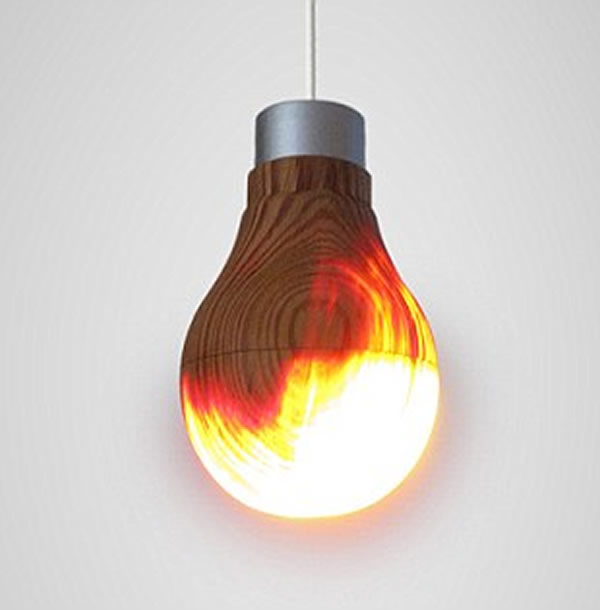 猛地一看它好像是一个被雕刻得像一个灯泡的木块,但通过打开电源开关,这个木头灯泡赋予了新的生命,能够释放出炽热的火焰光线。