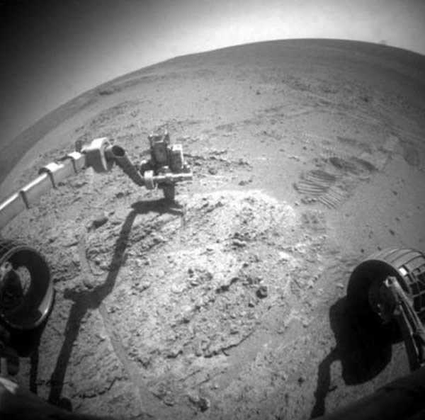 这是本周机遇号拍摄的前景图像:自从2004年1月份登陆火星以来,机遇号已经在火星南半球表面度过了4个冬天,它的着陆地点位于目前它所处的位置西北方大约14英里处
