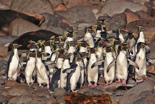 南大西洋戈夫岛的北凤冠企鹅群。