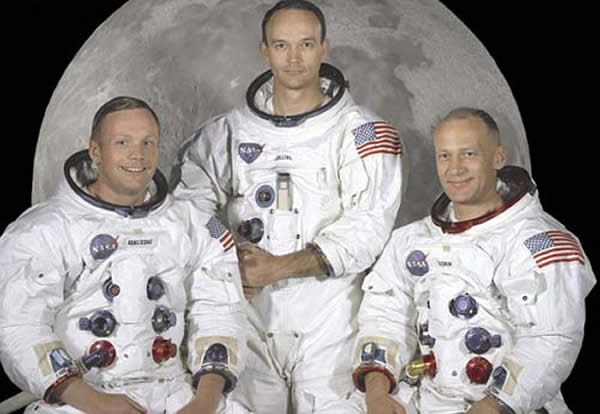 阿波罗11号太空任务的3位宇航员,阿姆斯特朗位于图片左侧