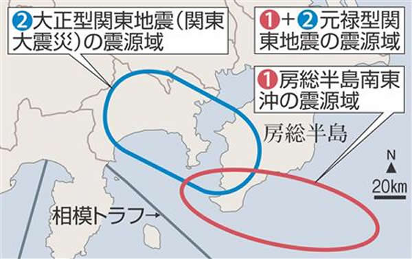 据悉,从1997年到2011年为止,国土地理院在房总半岛南端设置的观测点每年以3厘米的速度向北移动。而在房总半岛海域下方,菲律宾海大洋岩石圈构成的板块正在与大陆板块相冲撞。而这个地区至少已经有300年没有发生大型地震,一定能量正在被积攥。因此,这里有可能发生以房总半岛海域为震源的大型地震。
