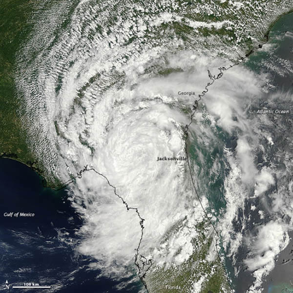 美国宇航局Terra卫星上的中分辨率成像光谱仪(MODIS)当地时间5月28日中午拍下了这幅自然色照片。风暴云主要位于杰克逊维尔以西,其悬臂延伸至佐治亚州、大西洋和墨西哥湾。