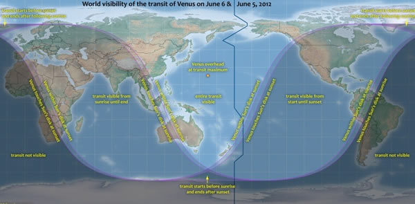 2012年“金星凌日”地球上对应的过境路线