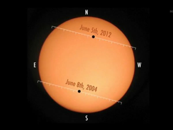 本世纪两次相距八年的金星凌日路径对比图