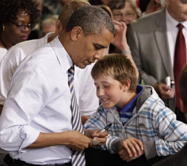 美国男孩为见奥巴马逃课 获总统亲笔批假条 来源: 蜘蛛网 时间:2012年6月04日 10:27 奥巴马亲笔为逃课来听他演讲的11岁小男孩开出请假条 美国11岁男孩泰勒1日(周五)逃课一天,不过他丝毫不用为此担心,因为总统奥巴马亲笔为他写了请假条。 奥巴马1日前往明尼苏达州,并在霍尼韦尔公司发表创造就业的演说。泰勒为能与总统“亲密接触”,旷课一天。泰勒说,他当时就坐在听众的前排,非常兴奋,并有机会与奥巴马握了手。 当奥巴马得知泰勒逃课的事情后,当场为他写了一张请假条并亲笔签名,“请原谅泰勒,他与我在一起。” 泰勒对此十分自豪,期待他的“终极豁免书”能够让同学们大吃一惊。 中新网6月4日电 上一篇 下一篇 TAG: 奥巴马 美国