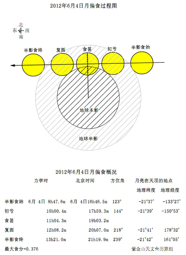 6月4日月偏食 来源: 蜘蛛网 时间:2012年6月04日 10:36 6月4日月偏食 如果说6月6日的金星凌日是不容错过的天文“大餐”,那将发生在6月4日傍晚的月偏食就是不折不扣的“餐前甜点”。6月4日是农历的十五,但当月亮于晚上7点多从东南地平线上升起的时候,你会发现它缺了一小块,这实际上是月偏食已经到达食甚的时候了(此现象被称为“带食月出”),所以我们只能见证其复圆的过程(复圆时刻约为8点07分)。另外本次月偏食的食分不大(也就是月球被遮掩的程度不大),欣赏性一般,大家大可将它作为6.6金星凌日的一个小小前奏曲。 星友空间站 李昕 上一篇 下一篇 TAG: 月偏食