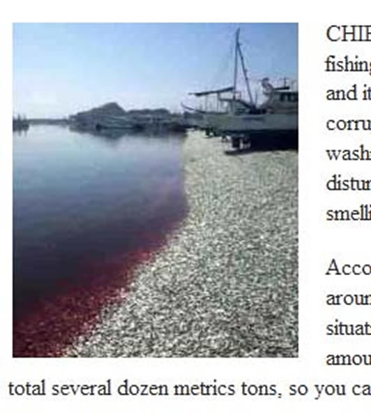 据上传到微博上的图片显示,夷隅市港口几乎被死鱼填满,看起来就像用沙丁鱼铺了一层地毯。许多人在网络上评论认为,这可能是日本即将发生重大自然灾难的预兆。当地人称,那里的臭味几乎令人无法忍受,不知道何时能够清理完所有沙丁鱼。